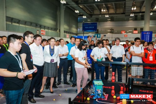 作为国内迅速成长的全球知名机器人赛事品牌之一,MakeX成为了今年中国青少年机器人竞赛的重要赛项之一。据悉,在此次大赛中,MakeX将着重展示“MakeX Challenge勇者征途”这一赛项,届时将有来自全球12个国家的选手在这里切磋较量。大赛开幕式后,中国科协科普部副部长、青少年科技中心副主任钱岩,重庆市科协党组书记、常务副主席王合清等领导嘉宾莅临MakeX参观,童心制物(Makeblock)兼MakeX品牌创始人王建军现场接待并作深入的交流。领导一行对于MakeX的发展及理念表示高度认可并鼓励其作为本土赛事品牌,继续助力科创人才培养。