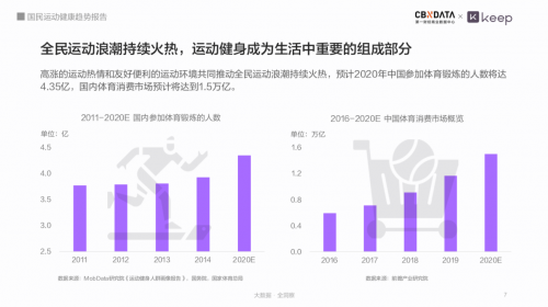 健康意识的觉醒催生了国内的运动健身风潮,黑天鹅事件的到来进一步推动了全民健康观念升级,后疫情时期的运动风潮势必持续升温。