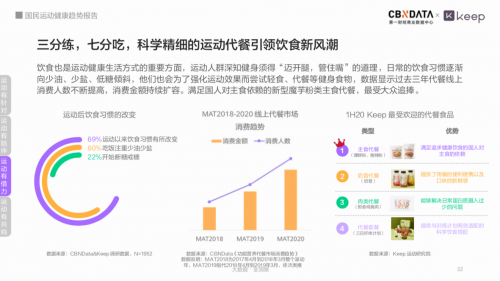 运动人群深知“三分练,七分吃”的“真理”,饮食习惯不仅向“少油少盐”转变,也会以不同种类的代餐、轻食等来解决日常运动时吃什么的难题。