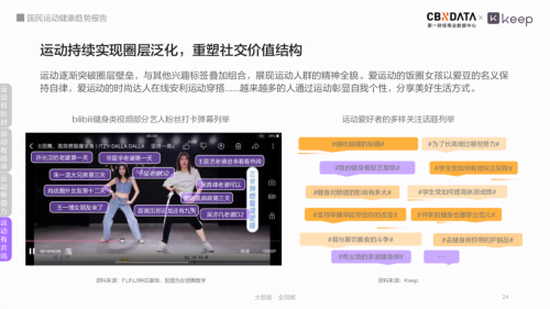 运动对社交价值的重构,除了运动本身带来的话题与社交,还包括通过运动与其他标签的组合来呈现运动爱好者的多样面貌,实现破圈式社交,带来运动美食、运动穿搭、饭圈女孩打卡等多样化的运动话题。
