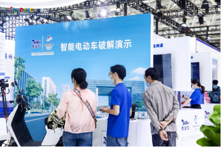 在奇安信设立的互动体验区,奇安信工作人员通过极具趣味性的互动体验。例如,现在很多智能电动自行车能够联网,通过手机或者电子钥匙进行解锁控制,这其中给人们带来便捷的同时,也存在着安全隐患。现场,奇安信技术人员揭示不法分子是如何窃取控制智能电动自行车。