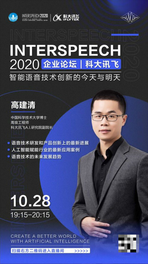 大会期间,科大讯飞将在10月28日19:15-20:15举办线上“企业论坛”,科大讯飞A.I.研究院副院长高建清博士将带来《智能语音技术创新的今天与明天》主题报告,分享科大讯飞在语音技术研发和产品创新方面的最新进展以及人工智能赋能行业的应用案例,并展望语音技术的下一步发展趋势。