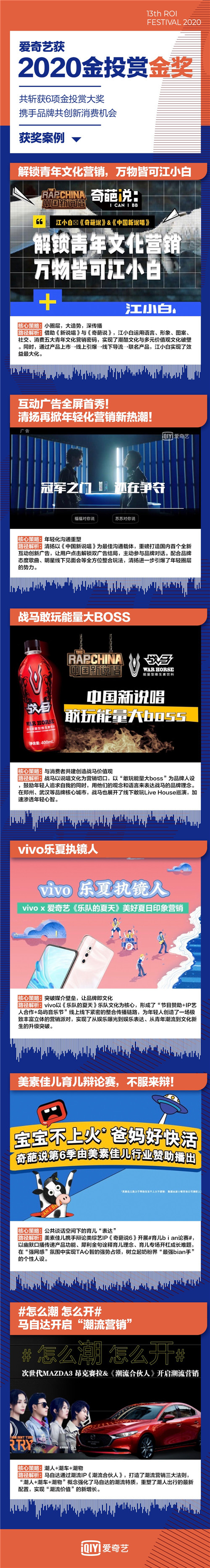 金投赏商业创意奖是亚洲规模最大、含金量最高的创意大奖之一,旨在推动中国商业创意,助力全球企业成长。爱奇艺凭借领先的内容力优势,在新消费价值网指导下以内容、艺人、内容带货、线下、新消费孵化五大发力点,以内容为核心帮品牌抓住新消费浪潮。