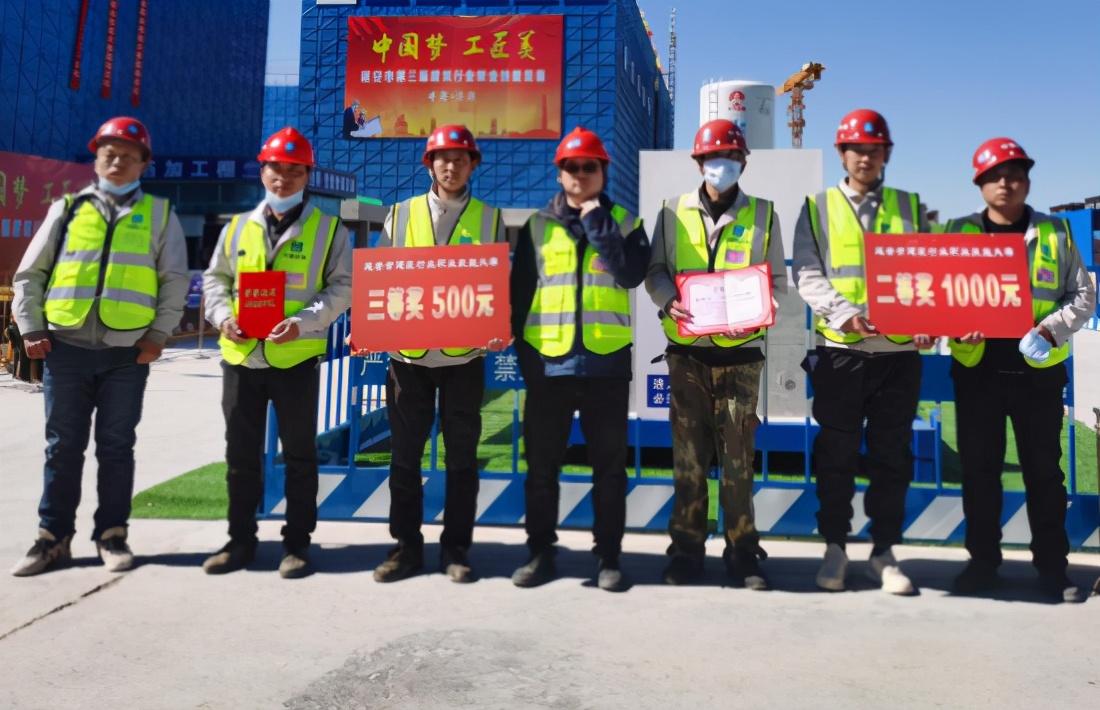 本次比赛共有来自延安市各区、县23个项目代表队参赛,共计23个代表队,每个代表队分为钢筋工、管道工、砌筑工三个工种,每个工种3人参赛,比赛分为知识问答、现场实操两个环节。延安万达文化旅游项目代表队赛前精心准备,比赛过程中奋勇争先、精益求精,三大专业的选手面对不同的对手,拼速度、求质量,经过激烈角逐,最终项目代表队砌筑组荣获二等奖,管道组获得三等奖。