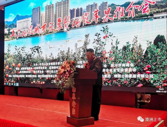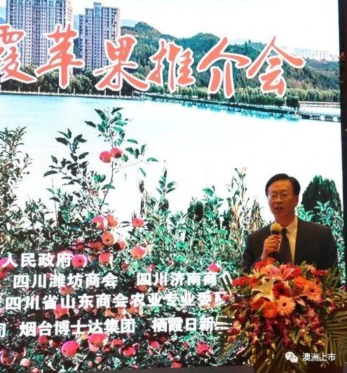 11月7日,“我和我的家乡”——四川烟台商会成立一周年暨栖霞苹果推介会在成都市山东老家大酒店举行。