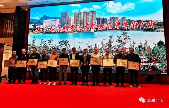 栖霞市常委、宣传部部长王志文先生为烟台商会杰出贡献者颁奖
