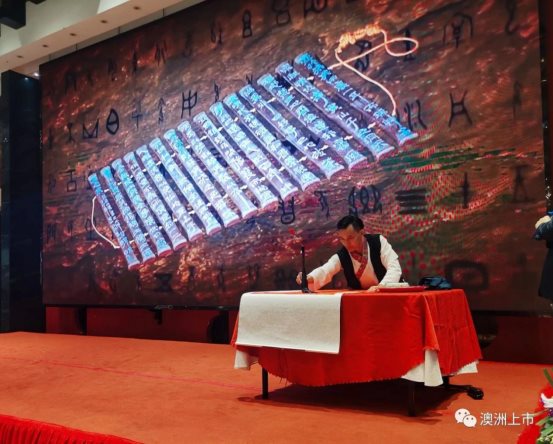 随后,烟台商会宴请了与会嘉宾,席间艺术家奉献了精彩的文艺节目,三次参加中央电视台春节晚会的刘天艺老师表演齐鲁文韬武略,将武术、书法、演唱进行完美结合,表演精彩绝伦,四川师范大学音乐学院研究生张琳现场演唱了《栖霞之歌》。
