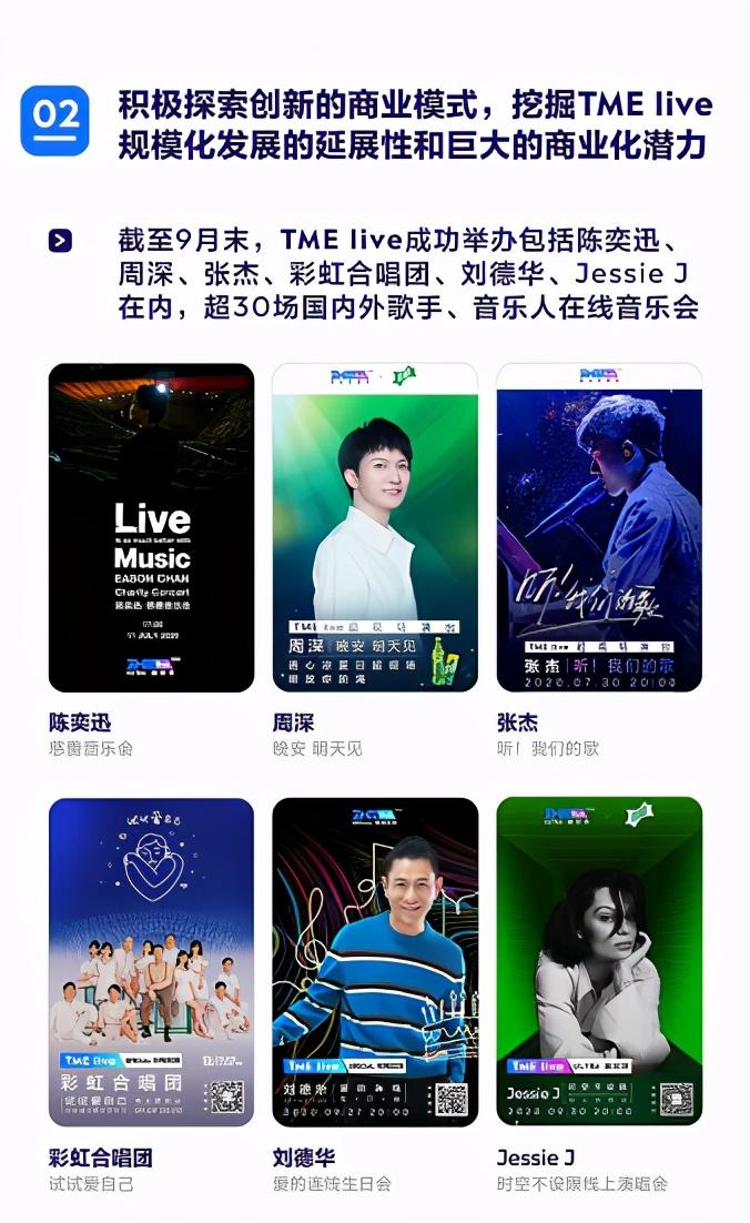 从财报来看,作为创新业务的重要板块,腾讯音乐创新的超现场演出品牌TME live,在三季度表现依旧出色。通过卓越影响力和制作质量,TME live进一步继续吸引了更多国内外不同流派和风格的知名艺人参与,例如刘德华、陈奕迅、Jessie J和周深等。作为连接知名艺人、新秀歌手和粉丝用户的最佳桥梁,TME live打破线上线下边界,从3月上线至今,TME live举办了30多场超现场在线音乐演出。11月14日18:30,袁咏琳还将在生日当天,来到TME live特别现场举办首场个人内地生日会,邀请全国的乐迷一起庆祝生日。届时,腾讯音乐旗下QQ音乐、酷狗音乐、酷我音乐、全民K歌四大平台将会倾情放送这个特别的现场,来自各地的乐迷都可以在此刻,听袁咏琳分享音乐,用温暖的力量支持她。
