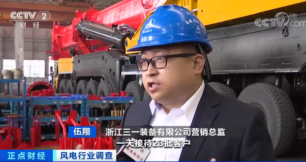 三一集团总裁助理、三一重起营销公司副总经理伍翔 告诉记者,最忙的时候一天接待23批客户,都是要风电主吊的,比如汽车起重机、履带起重机,现在行业形势已经变成了,比如汽车起重机从300吨到1600吨,履带起重机从400吨到800吨,只要是能干风电的吊车,全部进风电场了。操作手司机的工资也在涨,开这种吊车的司机原来可能一万元一个月,现在两万,马上可能到三万了。