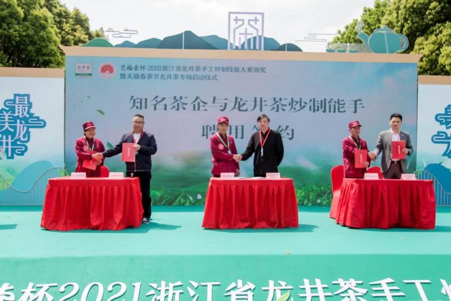 其中,艺福堂茶业有限公司等头部茶企,还签约了龙井茶十大炒制能手中的优秀代表,进一步扩大龙井茶的影响力,使千年龙井文化绽放新的光彩。