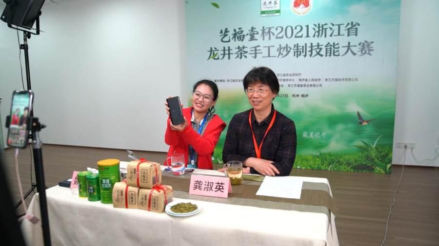 借助电商直播的东风,本场比赛还特别设立了龙井茶直播活动,使未到现场的观众也能近距离地感受现场活动的热烈氛围。此外,浙江大学的龚淑英教授、桐庐县农业技术推广中心茶桑站姚福军站长还做客直播间,向观众们介绍了龙井茶三大产区,桐庐风土人情,龙井知识科普,选购技巧等内容。异彩纷呈的活动,趣味横生的讲解,以及丰富的奖品赠送,使直播间高潮迭出,吸粉无数。