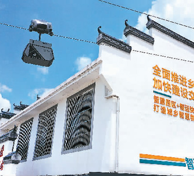 江西省赣州市安远县启动智运快线“村村通”,解决当前农村物流“小批量、多批次、即时配送”等需求,打通农产品出村进城“最初一公里”。图为穿梭机器人在安远县鹤子镇阳佳村低空索道上运行。