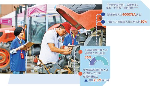 从培养规模来看,“技能中国行动”结合技能人才特点、发展趋势、工作实际等进行了综合分析测算,提出了“十四五”规划目标,包括新增技能人才4000万人以上,技能人才占就业人员比例达到30%,东部省份高技能人才占技能人才比例达到35%,中西部省份高技能人才占技能人才比例在现有基础上提高2个至3个百分点。