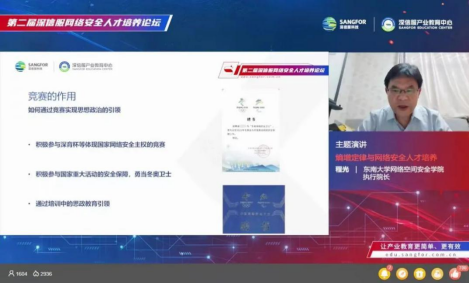 东南大学网络空间安全学院执行院长程光做《熵增定律与网络安全人才培养》主题演讲,分享熵增定律对网络人才培养体系的影响以及如何通过网络安全竞赛打破原有人才培养体系的封闭系统,实现思想政治的引领、知识体系的更新,实现知识到技术的应用转化,形成人才培养体系的开放系统。东南大学在网络安全人才培养方面历史悠久,于2016年获得首批网络空间安全一级学科博士授权点,同年在全国高校中较早成立了网络空间安全学院,也是国家首批“一流网络安全学院建设示范项目高校”。