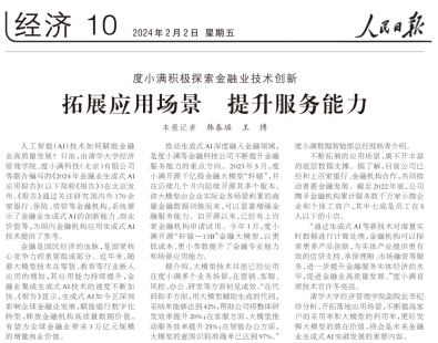 2月2日,《人民日报》以《拓展应用场景,提升服务能力》为题发表文章,探讨了人工智能(AI)技术如何赋能金融业高质量发展等话题,并以度小满的“轩辕”金融大模型为例,分析了生成式AI融入金融领域的趋势。