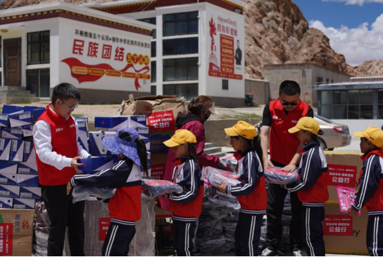阿里地区海拔高、昼夜温差大,胜利车膜携手航天山由和途虎养车采购了一批羽绒服、厚棉被和童鞋等作为爱心物资,向察布乡小学学生送去温暖。同时,为表达对援藏支教老师的关爱和敬意,一件件加绒冲锋衣也送到老师们的手中,帮助他们在低温环境下得到保暖。