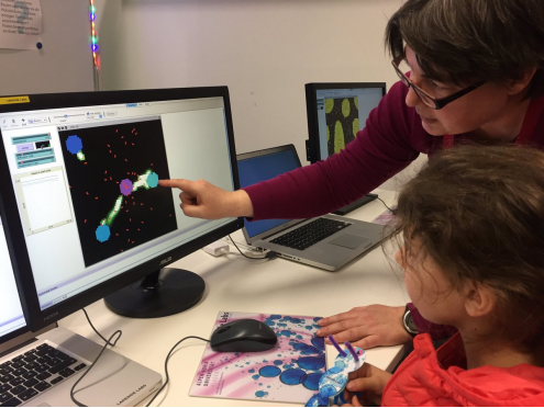 学生使用 NetLogo 蚂蚁模型,观察蚂蚁如何采集食物