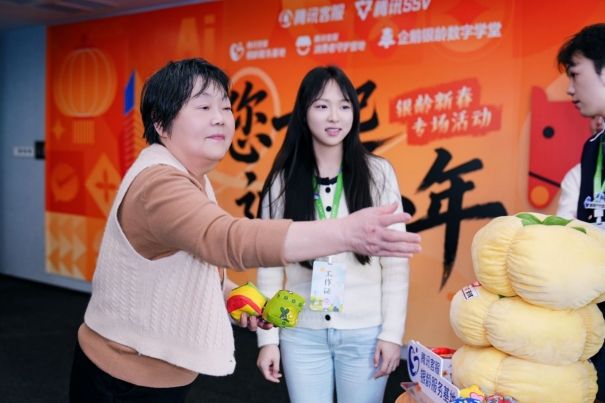 本次活动兼顾体验性与实用性,精心设置四大核心环节,全方位满足老年群体数字学习与新春需求。活动组织老年群众实地参观银龄服务基地,直观了解适老化服务体系建设情况;结合春节高频场景,腾讯客服银龄服务专家们手把手教学AI工具使用方法,普及红包制作技巧,贴合新春民俗氛围;打造新春主题游园会,将反诈知识、数字技能融入趣味互动,实现“寓教于乐”;同时,为首批参与活动的老年人授予“腾讯客服银龄服务基地体验官”称号,鼓励老年群体主动参与数字生活,积极建言献策,推动适老化服务持续优化。