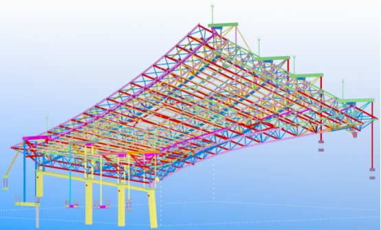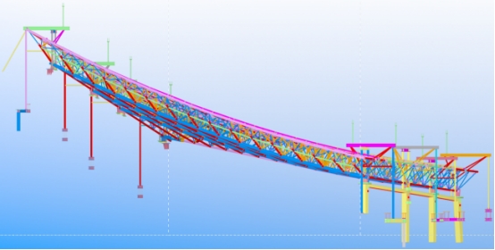 据中建一局华北公司工业人工智能太湖产业基地项目经理、党支部书记王晋介绍,“该高空异形双曲面钢网架,采用对角空间扭曲构型重达266吨,最大高差达24米重型构件,就位与高精度拼接难度极大,项目团队采用地面整体拼装与一体化提升工艺,依托三维建模与智能测控技术,实现杆件毫米级精准定位,成功攻克大吨位结构整体提升挑战。飘板桁架最大提升高度达26.67米,且存在明显重心偏移问题,对提升精度与稳定性要求极高,项目启用YT-1型计算机同步系统,联动8台液压提升器协同作业,搭配空间扫描、BIM模型动态比对监测技术,实现提升全过程精准管控,圆满完成飘板桁架重载精准提升与双曲面完美闭合”