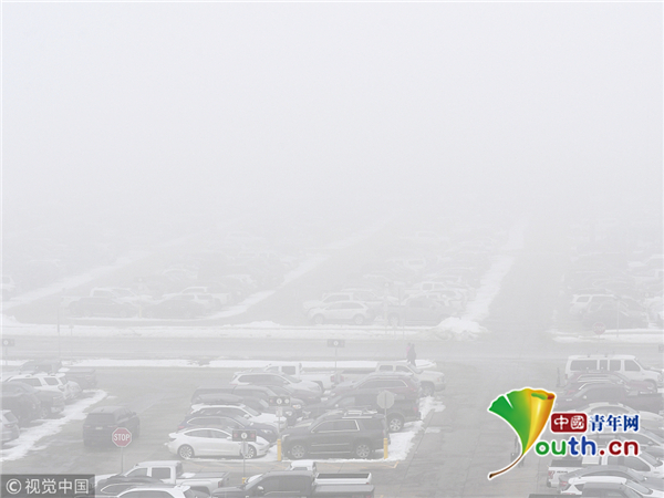 当地时间2019年2月26日,美国科罗拉多州丹佛市,受大雾天气影响,丹佛国际机场航班延误。