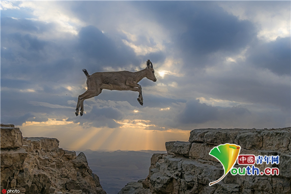野生动物摄影师Nachun Weiss拍摄了一组日落时分山羊蹦来跳去的照片。69岁的Nachun Weiss来自以色列特拉维夫,他来到以色列米茨佩-拉蒙的内盖夫沙漠,捕捉到山羊在夕阳下跳跃的唯美画面。