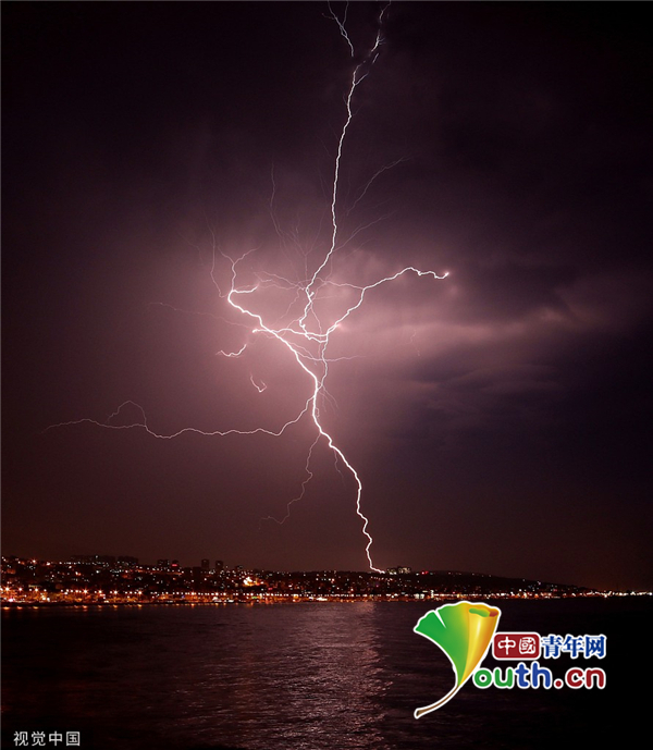 当地时间2019年8月21日,土耳其Samsun,闪电划破夜空,场面震撼。