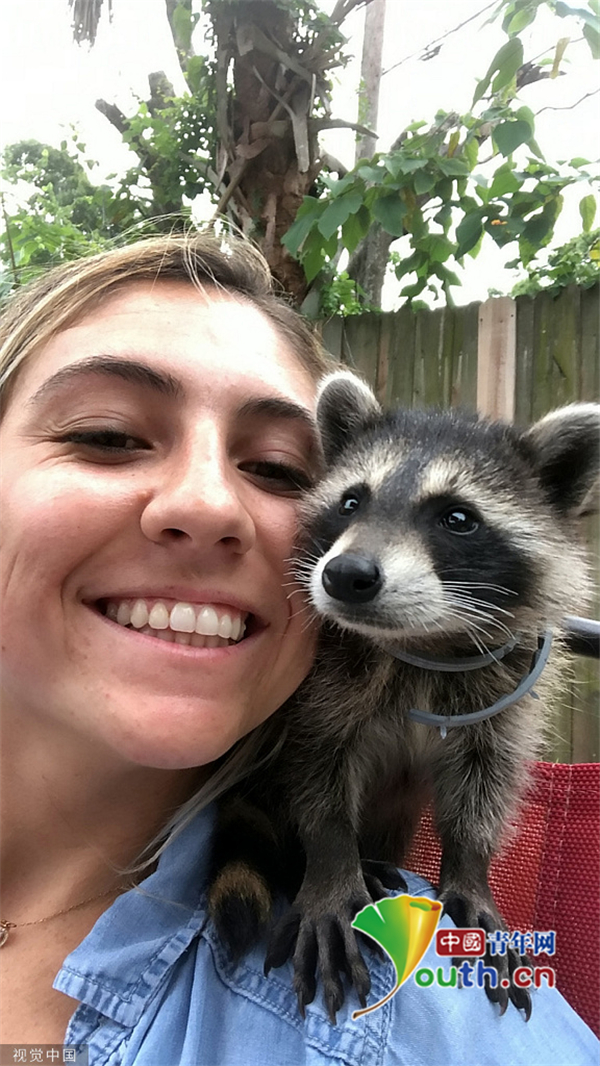 美国佛罗里达州,Lexi和Blake这对情侣有一个不同寻常的宠物。他们5月份在朋友家后院救下一只被母亲抛弃了的小浣熊,取名为奥斯卡。奥斯卡被发现时只有两周大,需要精心的照顾才能健康长大。他们为奥斯卡清理出了自己的小窝,保证它能有一个温暖的成长环境。