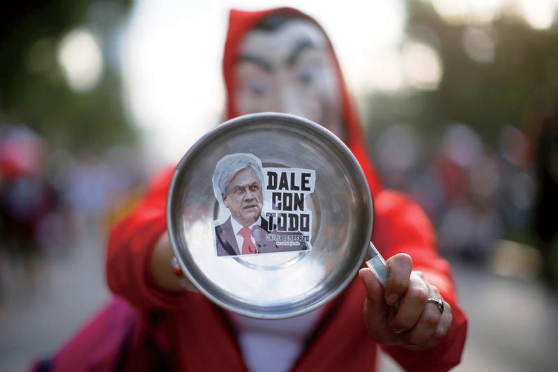 《纽约时报》称,10月19日中午,人们在街头敲打锅碗瓢盆,抗议生活成本不断上涨、养老金少得可怜、最低工资不够糊口、医疗和教育体系欠缺,以及公共设施昂贵且低效。