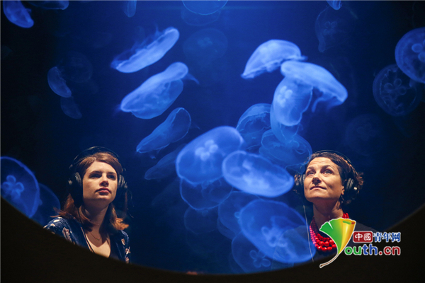 当地时间2019年11月20日,英国伦敦,Rimini Protokoll的沉浸式水母装置在英国伦敦皇家艺术学院生态幻想展上展出。这是一个由50只月亮水母组成的水池,是少数几个真正受益于全球变暖影响的物种之一。
