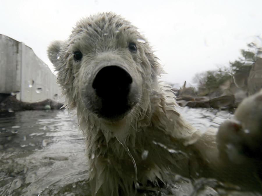 当地时间2020年3月3日,奥地利维也纳,Schoenbrunn动物园内,雌性北极熊幼崽Finja和母亲Nora在围栏里玩耍散步。Finja于2019年11月9日出生在Schoenbrunn动物园。