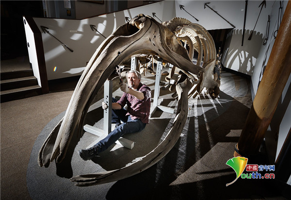 当地时间2020年10月18日,英国英格兰赫尔河畔金斯敦自治市,管理员在拆卸赫尔海事博物馆内最大的藏品,约12米长(40英尺)的北大西洋鲸骨架。