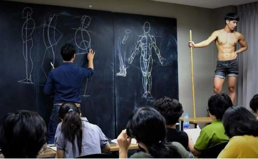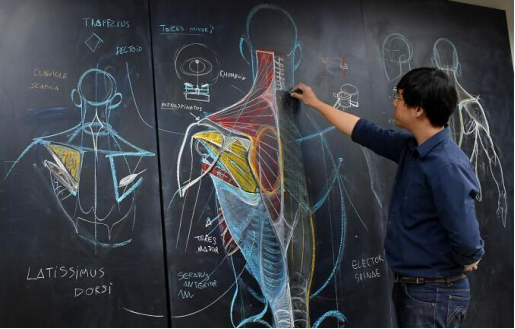 Wannarit的课程名为“艺术家的解剖学”,主要是让学生对人体有一个全面的了解,并解开复杂的部分。他的课充满趣味性,常常邀请模特上台展示,并绘制大量精彩的黑板画。