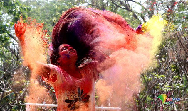 印度多地庆祝胡里节 现场成彩色粉末海洋