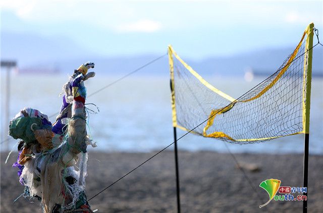 当地时间2021年6月7日,加拿大温哥华,跨学科艺术家Caitlin Doherty收集海洋垃圾制作塑料雕塑,并将雕塑放置于Kitsilano沙滩上进行展览,以呼吁社会加强环保意识。
