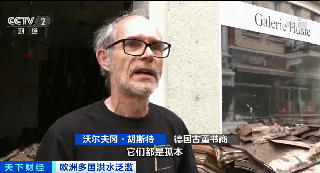 德国葡萄酒商 迈克尔·朗:我只能试着去挽救一些资料文件,但在商店里面,葡萄酒瓶、装饰品都被洪水毁坏了,碎玻璃被冲击到了街道上,事情已经发生,我们必须克服这些,继续清理工作。