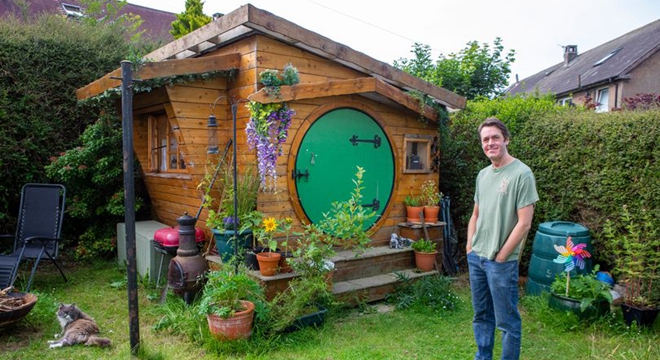 这名男子名叫Ali Hughson,现年47岁,来自爱丁堡附近的南昆斯费里,是一名宜家员工,Ali从少年时代起就是JRR Tolkien的粉丝,他很早就想举办一个以霍比特人为主题的工作室。据悉,Ali三年前开始计划,总共花了六个月时间才完成,他用木材建造了这座建筑。他还计划在屋顶铺上草皮,在顶部种上鲜花以吸引蜜蜂,并在冬天及时安装一个燃木炉和烟囱。Ali根据花园的形状设计了它,小屋甚至有标志性的圆形绿色门,这扇门曾在Peter Jackson的电影中出名。Ali对自己的霍比特人房屋工作室很满意,他的儿子喜欢在里面玩,他说:“这是一座木结构建筑,我们开始在地上放柱子,然后在上面铺上平床。”