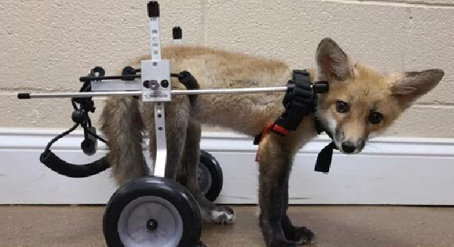 野生动物中心的工作人员为小狐狸取名Asia。经诊断发现,Asia天生残疾,两条后腿不能自主行动,工作人员为Asia制作了一个特殊的假肢,可以代替Asia的两条后腿活动。工作人员PK Blankenship介绍说:“这个假肢主要是由两个轮子及一些固定装置组成。我每天陪着Asia一起做治疗,它要戴上假肢做15—20分钟的固定运动,这些固定的动作有助于Asia的大脑学会重新理解如何移动它的腿。它每周还会进入高压氧舱(HBOT),这有助于减轻炎症和疼痛,并加快愈合过程。我们正在努力治愈Asia的脊柱和通向后腿的神经,让它尽快恢复正常功能。”