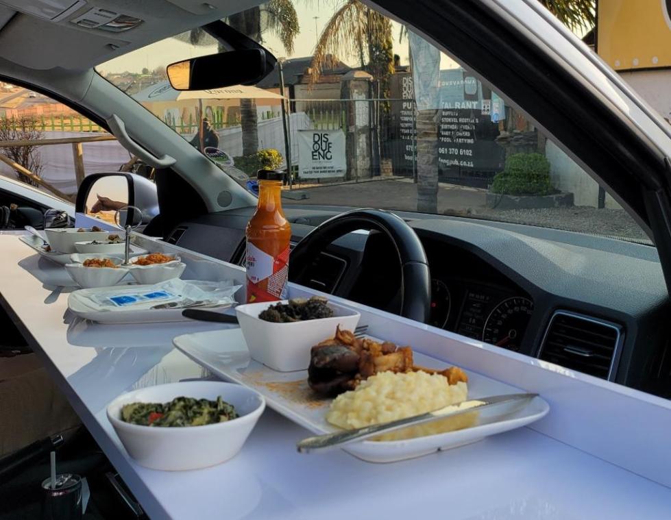 在南非一家餐厅,顾客可以在车内从容用餐。(图片来自网络)