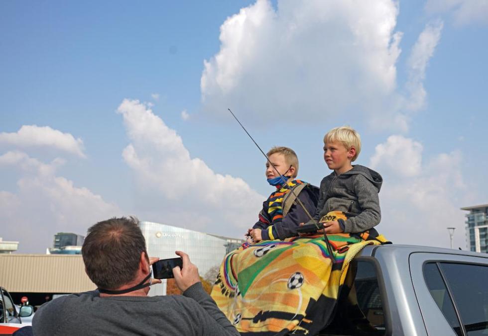 近日,南非约翰内斯堡一汽车影院,家长给正在看电影的小朋友们拍照留念。新华社记者 陈诚 摄