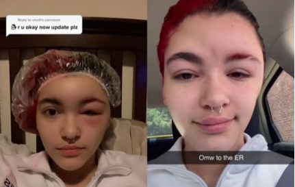 Ser从13岁就一直在使用染发剂,她对过敏产生的刺痛感很熟悉,最近这次染发她又感觉到了刺痛,于是只染了一半头发。第二天早上,她的男朋友把她叫醒,因为肿胀的太严重,就立马去了医院。原来Ser对一种叫做苯二胺的化学成分过敏,这是染发剂中很常见的化学成分,医生建议她服用药物并在过敏部位敷上冰袋。但Ser服用药物后并没有效果,反而继续恶化,脸变得麻木并有灼伤感,她的妈妈赶紧带她去急诊室治疗。最终Ser五天内去了三次医院,才完全康复。