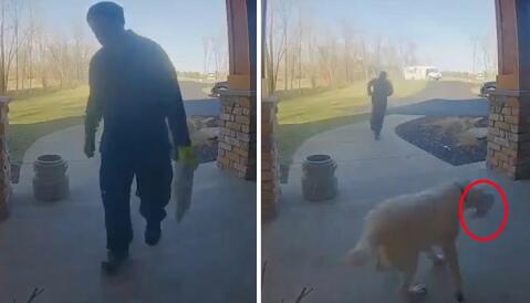 事情发生时狗主人梅根·桑德(Megan Sand)正在上班,门铃摄像头将这一过程拍了下来。桑德说:“我从来没看过,这让我觉得好笑。我想把欢乐分享给每个人,希望人们觉得有趣,让他们开心。”