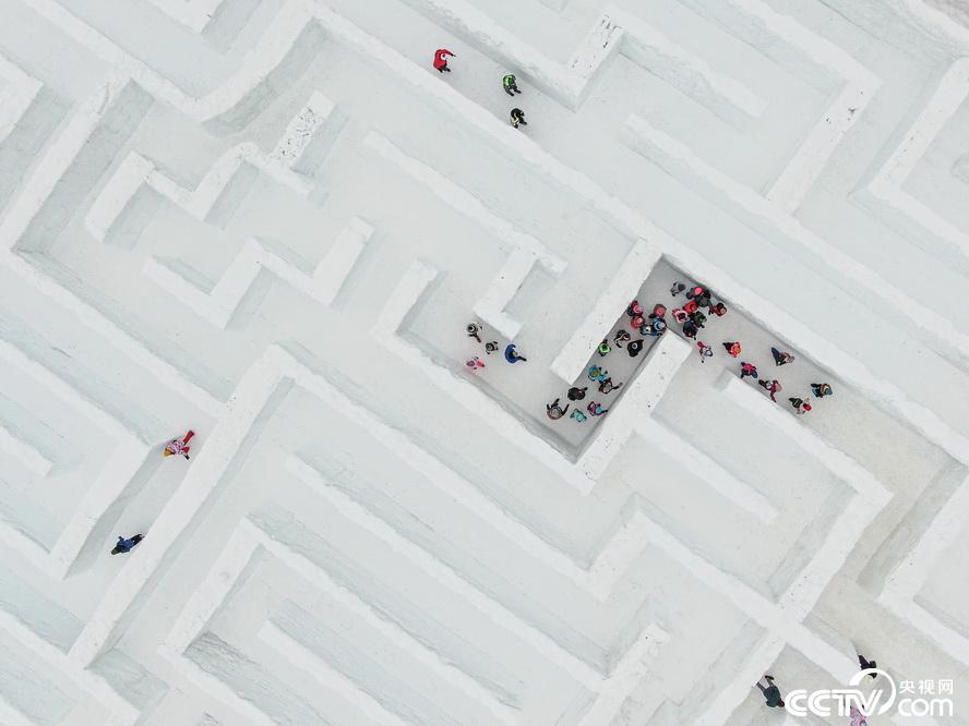当地时间2022年1月17日,波兰扎科帕内,游客在冰雪迷宫内游玩,这是世界上最大的冰雪迷宫,由原先的占地2500平方米扩大到3000平方米。 视觉中国