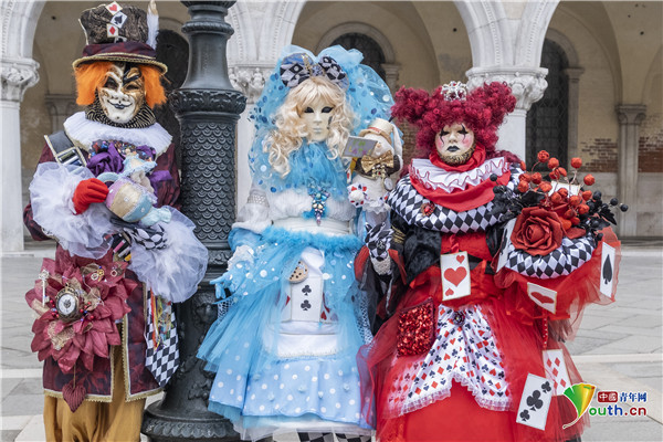 当地时间2022年2月20日,意大利威尼斯,当地一年一度的狂欢节游行活动持续进行中。本届威尼斯狂欢节的主题是“记住未来”,狂欢节于2月12日至3月1日举行。视觉中国