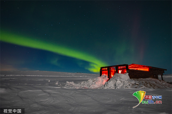 当地时间2022年12月30日,冰岛Hella,一束明亮的北极光横跨夜空。(来源:视觉中国)