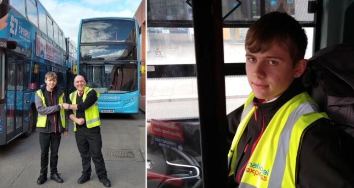 该男子名叫Luke Brown,现在是西米德兰兹郡考文垂国家快线的一名合格巴士司机。Luke表示热爱一切与驾驶有关的东西,而这种灵感来自已经当了20年公交车司机的父亲Stuart。在获得驾驶执照后,Luke开始接受培训,以获得载客车辆(PCV)执照。Luke表示和父亲一起工作将是他新工作中最棒的事情之一,除此之外,他还能帮助人们四处走动。在考文垂,一名全职司机的年薪为2.85万英镑,加上加班费甚至更高。
