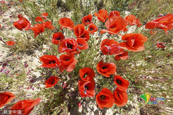 当地时间2023年6月3日,德国萨克森州莱比锡,虞美人和洋甘菊在郊区的田野里盛开。
