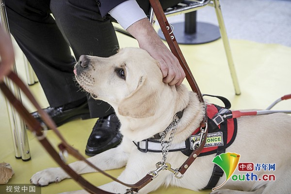 当地时间2023年6月12日,西班牙安达卢西亚,在塞维利亚举行的ONCE社会团体周活动中,导盲犬展览正在进行。6月12日,ONCE开始了安达卢西亚ONCE社会团体周的庆祝活动,在ONCE导盲犬基金会举办了一场训练有素的导盲犬展览。