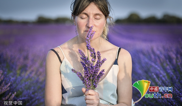 当地时间2023年6月30日,西班牙Brihuega,人们走过一片薰衣草田。Brihuega,被称为Alcarria花园,是30年前西班牙薰衣草种植的先驱。花田里的割草和收割工作在夏天开始,这时花已经呈现出灰色。这项工作在8月的第二或第三周之间结束,从而告别花季。仅在这些田地里,每天就能收获2500公斤香精。Guadalajara已经有超过1000公顷的薰衣草,并且建立了一个香水生产厂。