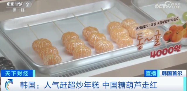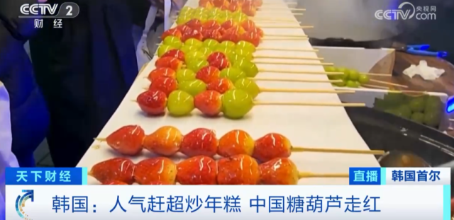 糖葫芦在韩国的售价不便宜,但是凭借吃起来酥脆还有好看的外形,在韩国人气攀升。根据韩国农水产食品流通公社对今年前五个月的统计,10多岁青少年相较于韩国传统小吃炒年糕,更喜欢中国的糖葫芦,不少学生家长表示孩子放学之后都会买一串边走边吃。