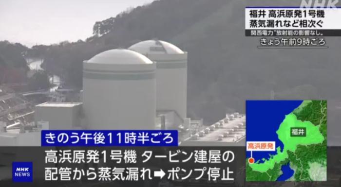 中新网1月22日电 据日本广播协会(NHK)报道,1月21日,日本高滨核电站1号机的冷却水泵管道发生水蒸气泄漏,几小时后,该核电站的另一台冷却水泵中又发生了冷却水泄漏。